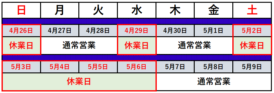 ゴールデンウィーク休業期間のお知らせ(2026年)